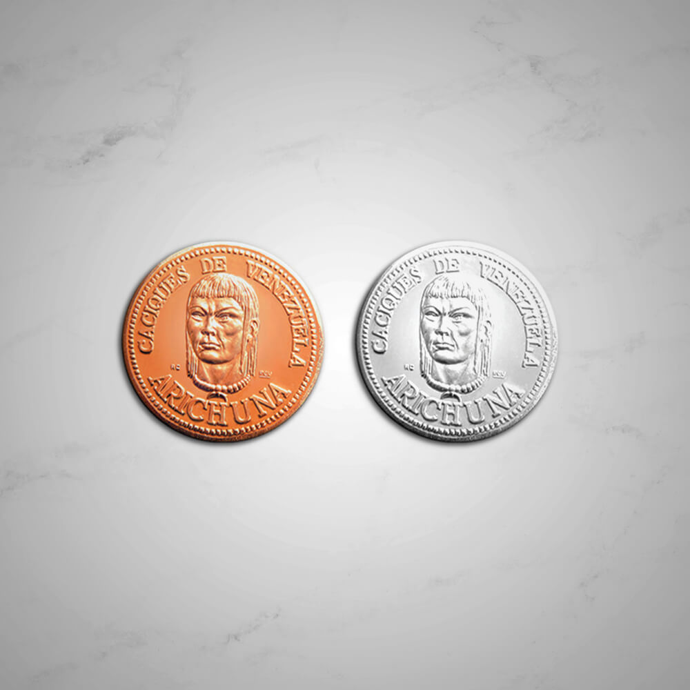CaciquesDesde tiempos más remotos, cada tribu, ciudad o pueblo, han tenido Genios protectores. Los héroes desaparecidos pueden evocarse a través de imágenes que representan y exaltan su valor y su virtud. Estas imágenes estampadas en oro Ley 900 o plata Ley 1000, constituyen para quién las lleva, protección y defensa, sostén y guía.
